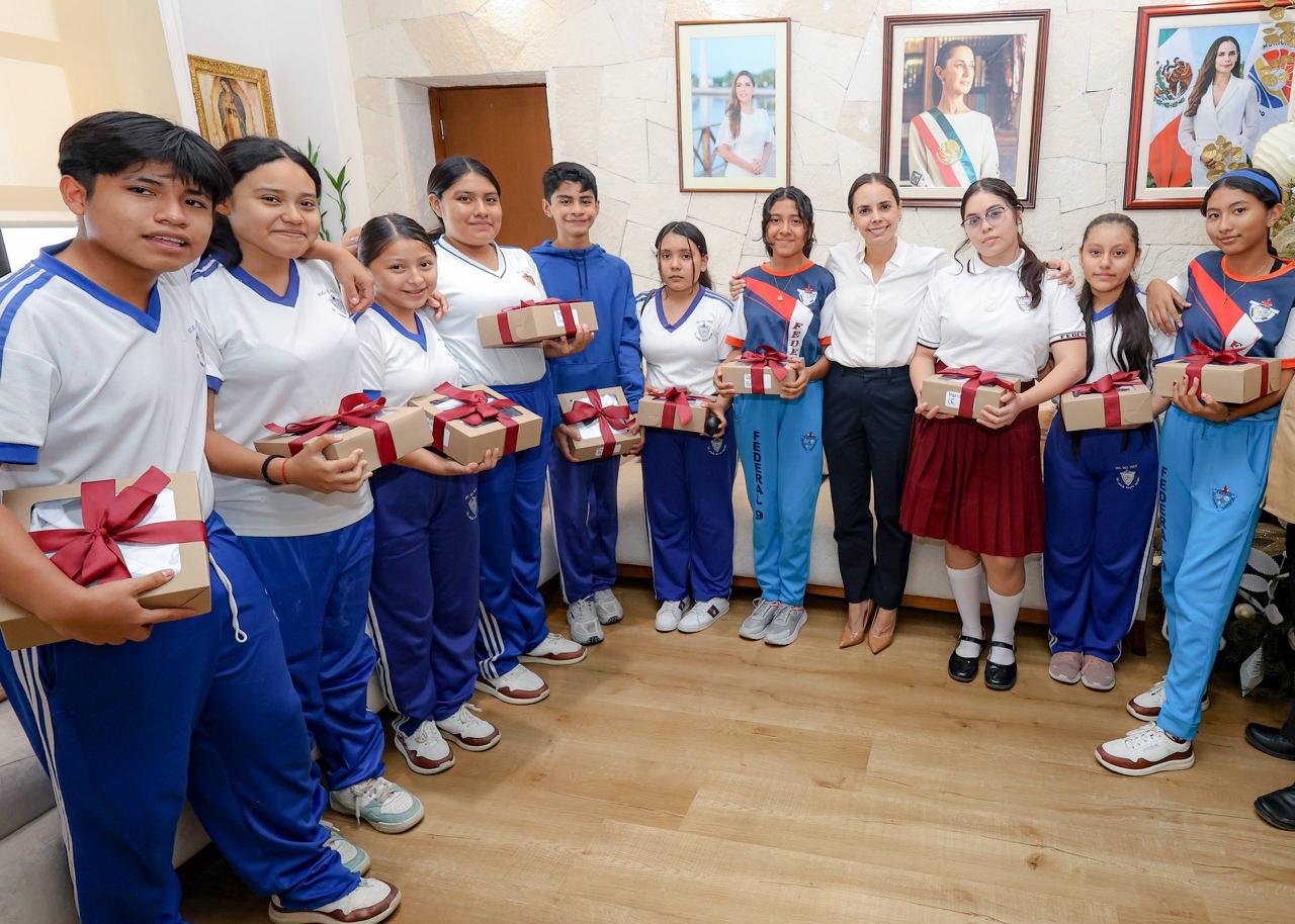 La Presidenta Municipal, Ana Paty Peralta, entregó uniformes a la escolta de la secundaria general No. 9 “Jesús Reyes Heroles”, producto de una gestión de
